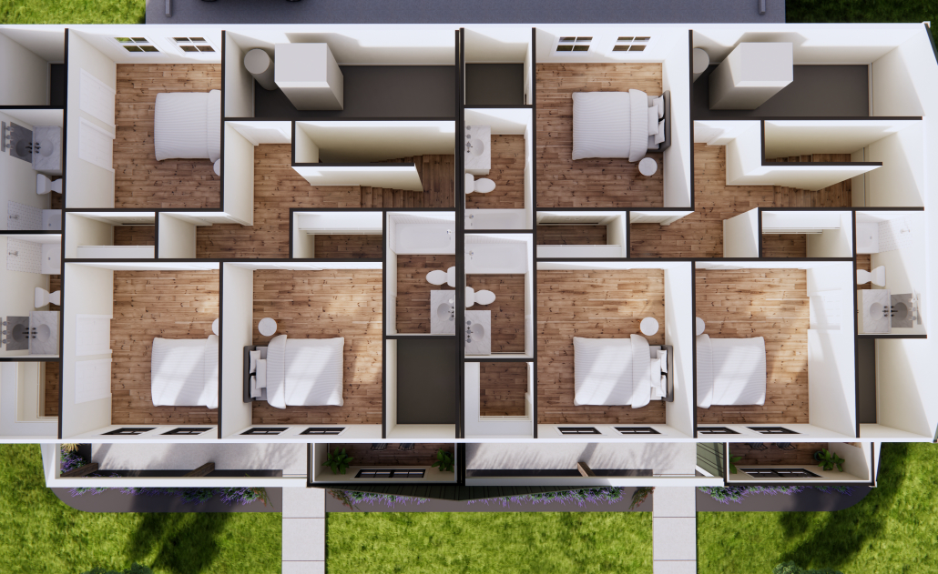 - Each unit features modern upgrades, including stainless steel appliances, energy-efficient systems, and spacious open-concept layouts. Every bedroom has its own private bathroom, making it perfect for students who want comfort and privacy.