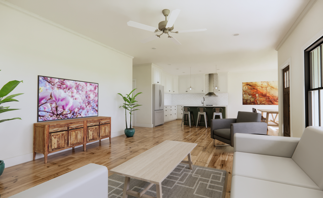 - Open-concept kitchen and living area perfect for studying or hanging out